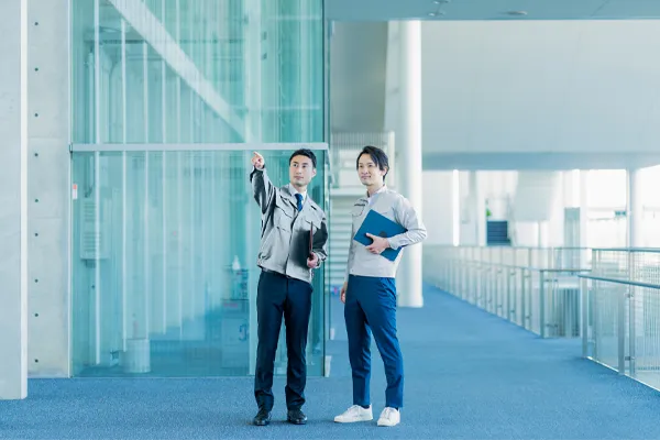 清掃・衛生管理は「ビル管理法」に基づいて計画し、都道府県の環境マネジメント方針にも準拠。建築物環境衛生管理技術者の指導のもと、最適な管理を行います。